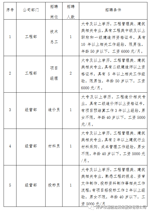 因工作需要,萍乡市某国有建设工程有限公司面向社会公开招聘工作人员,现将有关事项公告如下: