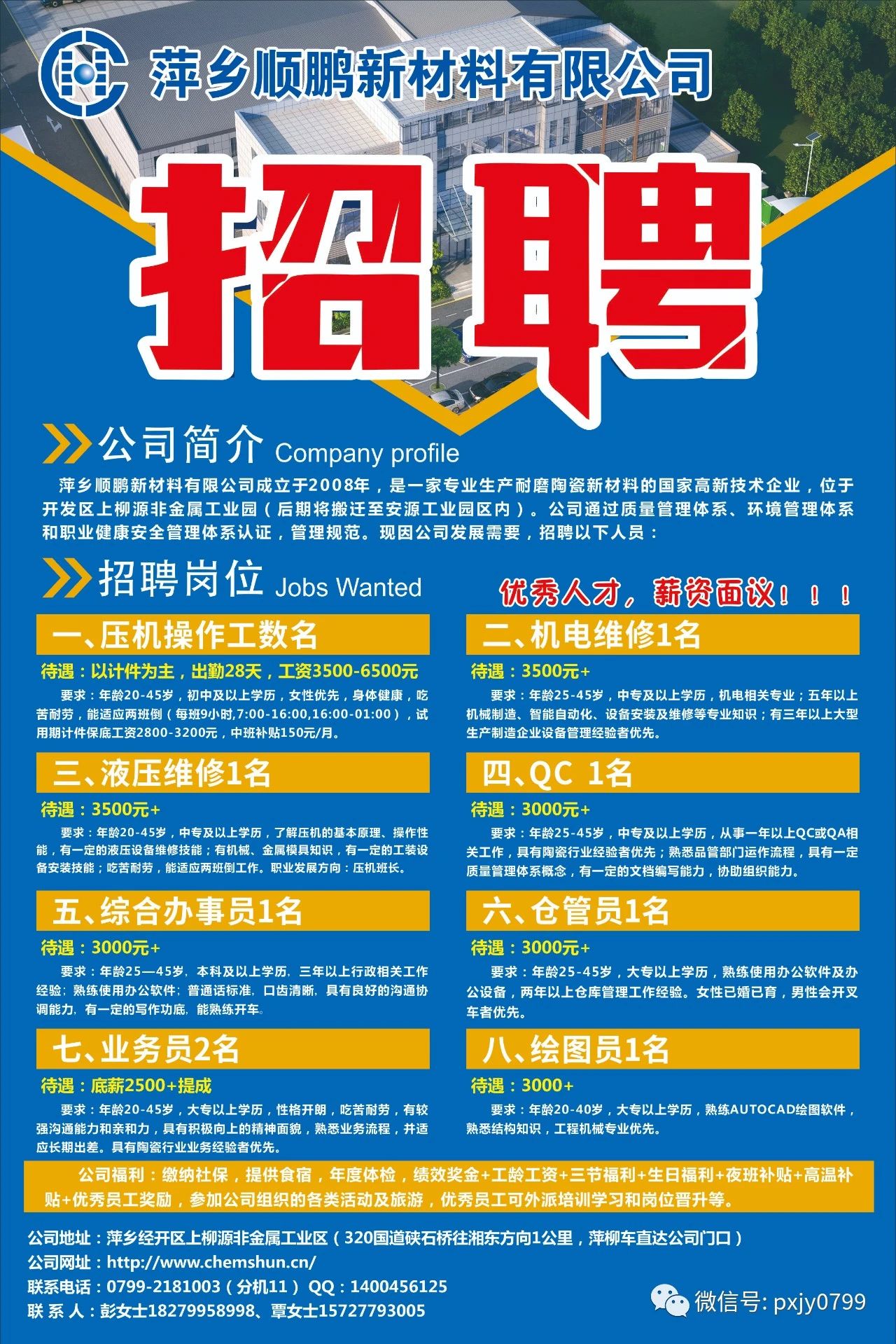 【招聘】萍乡顺鹏新材料有限公司招聘简章