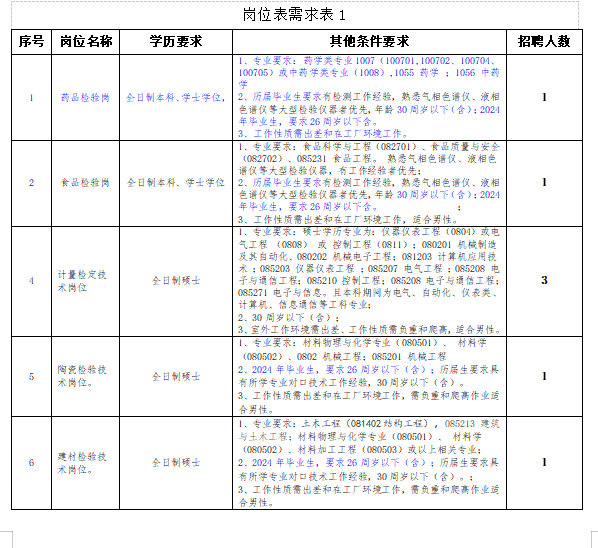 二、招聘岗位、人数及岗位条件见《岗位表需求表》: