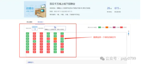第二步:点击顶部导航栏“单位中心”。在“预订招聘会”中找到时间为9月25日,名称为“职引未来—2025年全国城市联合招聘高校毕业生(江西)秋季专场活动”,并点击进入会场页面,点击“预订展位”。