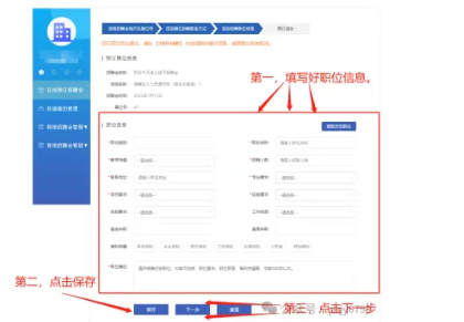 第四步:填写职位信息后点击【保存】,然后点击【下一步】