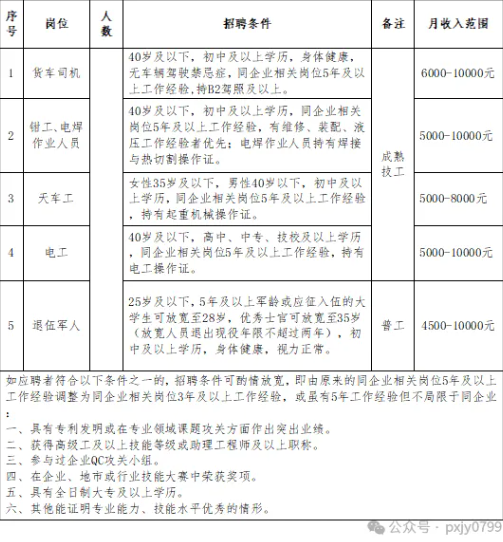 现因企业发展需要,拟招聘下列人员,具体事项如下: