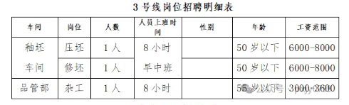 现因公司订单量大量增加,现需要招聘以下岗位人员: