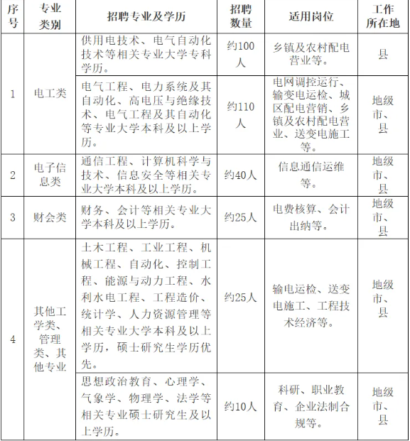 录用人员与各地供电服务有限公司签订劳动合同,均安排至乡镇供电服务一线技能岗位工作。