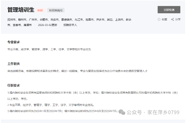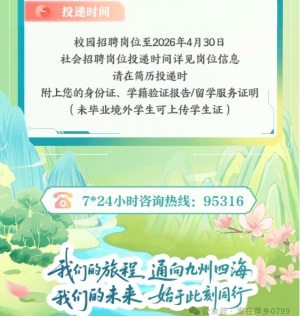 九江银行2026春季招聘启动!萍乡有岗!