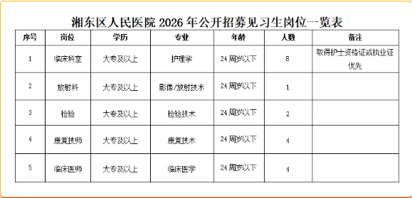 因工作需要,我院现面向社会公开招聘见习生19名,有关事项公告如下: