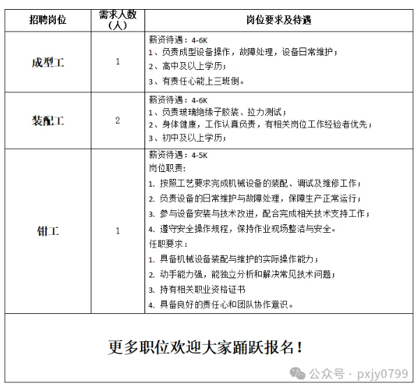 2、公司有完善的培训及晋升机制,为员工提供岗前培训、专业技能培训及其他相关培训,管理人员多以内部提拔为主,每位员工均可通过自己的努力走上管理或技术岗位。
