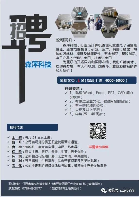 【招聘】江西森萍科技有限公司招聘策划文员